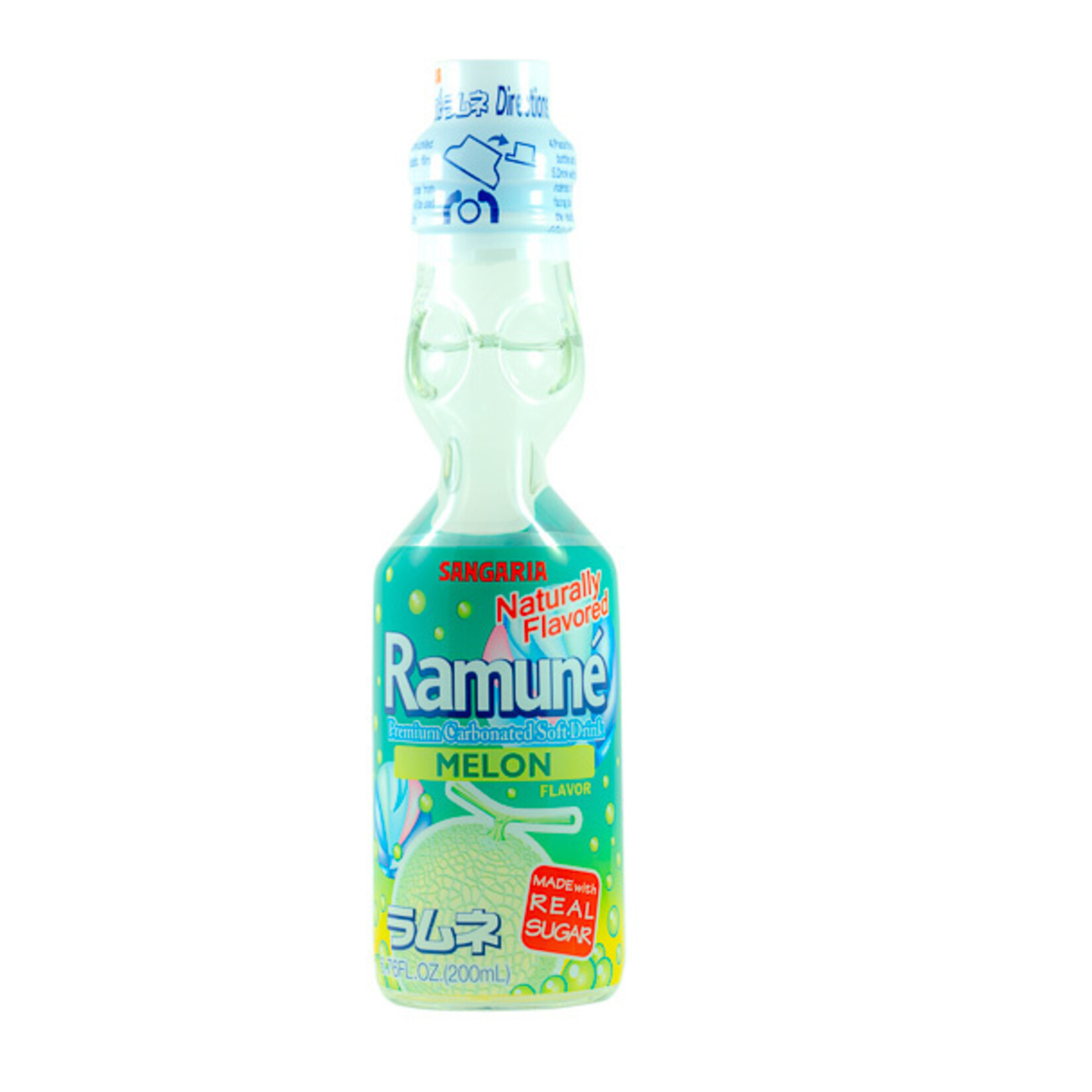 Ramuné Melon 200ml a un délicieux goût de melon fait avec du vrai sucre et un design de bouteille amusant. Cette boisson gazeuse du Japon contient une bille que vous libérez pour une carbonatation maximale. C'est amusant et délicieux!